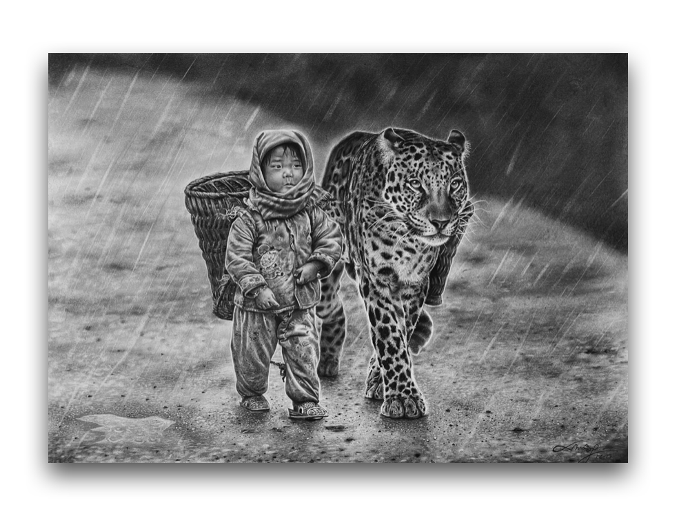 Con esta pieza trato de capturar el espíritu resiliente y la conexión intrínseca entre la vida y el arte. Mi camino, al igual que el del niño y el jaguar, es un viaje lleno de significado y aprendizaje constante.